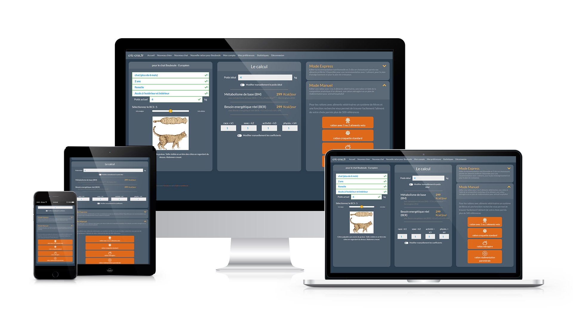 Crokit vous accompagne à chaque étape de la ration. Vous pouvez revenir en arrière à tout moment. Vous pouvez éditer plusieurs rations différentes pour un même animal. Recherchez l'aliment par nom, marque, gamme, stade physiologique, RPC, code centrale (Alcyon, Centravet et Coveto) ou en flashant le code barre du paquet.